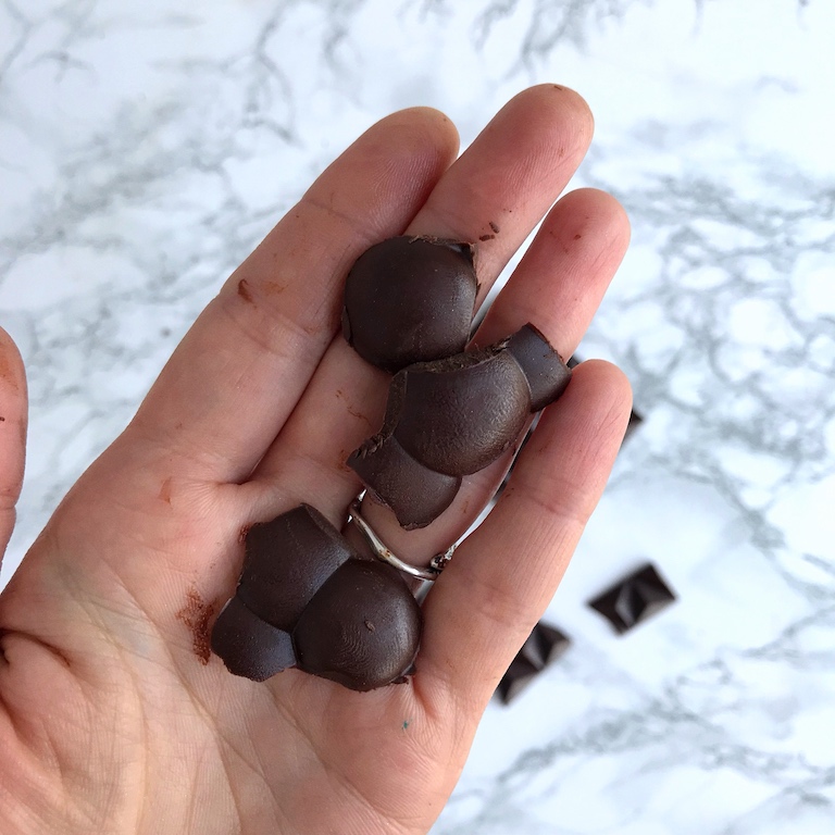 Нетемперированный шоколад похож на пластилин, он не блестит, пачкает руки, при сломе отсутсвует характерный хруст.