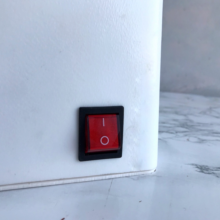 Изучив теорию, переходим к практике. Включаем мармит для шоколада в сеть. Помещаем темный шоколад в стальную ванную, закрываем крышкой и включаем мармит с помощью кнопки на задней его части.