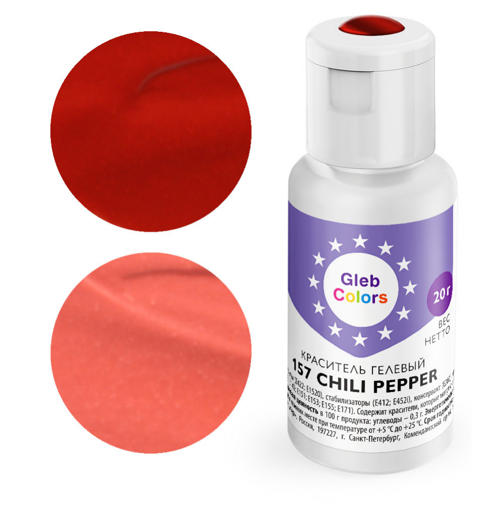 Гелевый краситель пищевой Gleb Colors 157 Перец чили (CHILI PEPPER), 20г